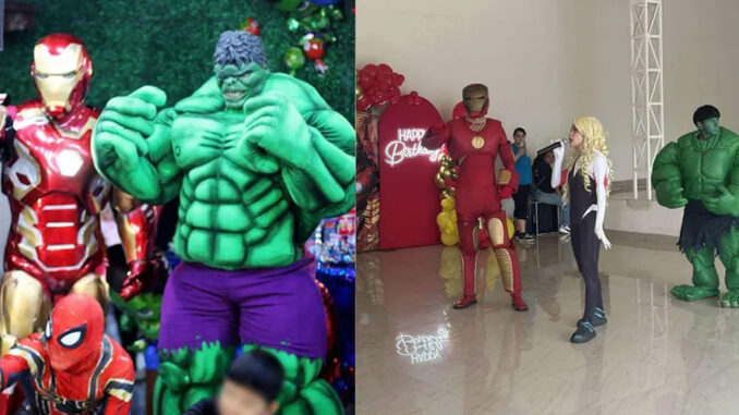 El animador disfrazado de “Hulk” no llevaba cabeza, solo el rostro pintado de verde, lo que rompió la ilusión de los niños