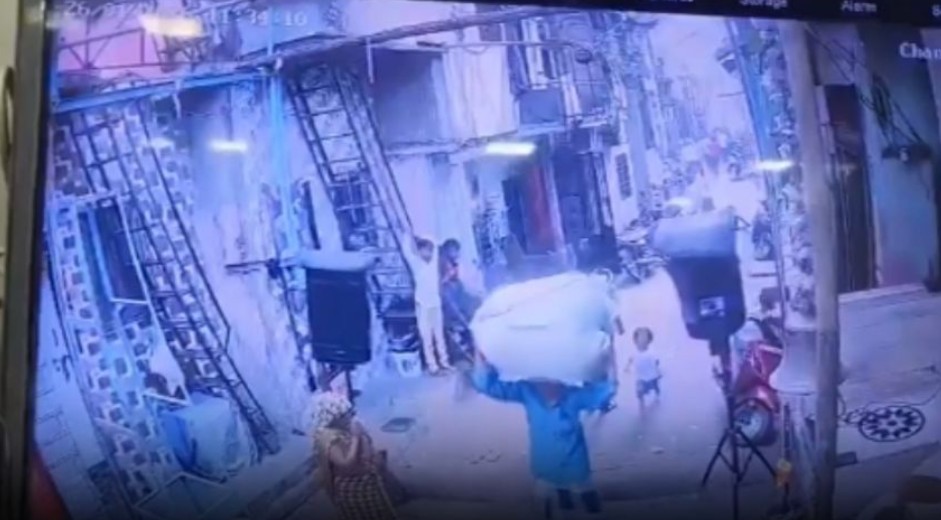 En las imágenes se observa que la pesada bocina cae directamente sobre la menor, quien en ese momento corría detrás del hombre, sin percatarse del peligro.